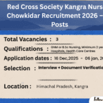 The DC Office Kangra has officially released the Red Cross Society Kangra Recruitment 2026 notification for Nurse and Chowkidar posts. A total of 03 vacancies are available. Eligible candidates can submit their offline application forms from 16 December 2025 to 05 January 2026. This recruitment is a good opportunity for candidates with experience in hospitals, […]